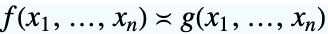 AsymptoticEqual[f,g,{x1,…,xn}{