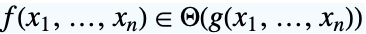 - 「漸近的に等しい」は,f は g の「big-theta」である,f g によって有界である,f は g 程度である,f は g と同じように成長する,等とも表現される.点 x*はコンテキストから推測されることが多い.