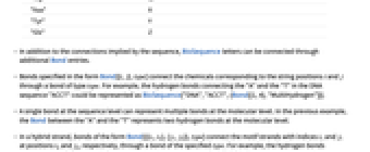 - 配列レベルの単一の結合で分子レベルの複数の結合を表すことができる.前の例では,"A"と"T"の間のBondが分子レベルの2つの水素結合を表している.