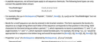 - ペピチド配列では,すべての結合タイプがすべての配列の化学物質に適用される訳ではない.次の結合タイプは表示されたペプチド文字だけを結合する.