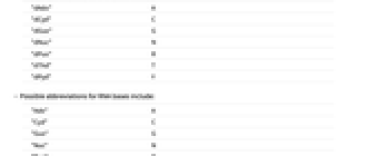 "dAdo" A "dCyd" C "dGuo" G "dNuc" N "dPuo" R "dThd" T "dPyd" Y - 次はRNA塩基の使用可能な略字である.