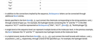- 序列级别的单键可以代表分子级别的多个键. 在前面的例子中,"A" 和 "T" 之间的 Bond 代表分子水平上的两个氢键.