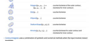 Triangle[{p1,p2,p3}] 反時計回り Rectangle[p1,p2] 反時計回り RegularPolygon[n,…] 反時計回り Polygon[{p1,p2,…}{{q1,q2,…},…}] 外側の積分路の反時計回り,内側の積分路の時計回り Disk[p,…] 反時計回り Ellipsoid[p,…] 反時計回り StadiumShape[{p1,p2},r] 反時計回り Annulus[p,{rm,rm},…] 外側の積分路の反時計回り,内側の積分路の時計回り - ContourIntegrateは,入力が厳密ではない数量を含む場合は記号メソッドを数値メソッドを組み合せて使う.
