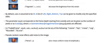 {"Vignette",r,color} 从中心降低亮度 - 默认情况下,sides 假定为 All. 可给定 Left、Right、Bottom、Top 对指定边进行加工.