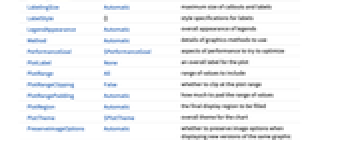 {e1,e2,…} 有或没有封装的元素列表 <|k1y1,k2y2,…|> 具有键值和长度的相关性 TimeSeries[…],EventSeries[…],TemporalData[…] 时间序列、事件序列和时间数据 WeightedData[…],EventData[…] 扩展数据集 w[{e1,e2,…},…] 应用于整个数据集的封装 w[{data1,data1,…},…] 应用于所有数据集的封装 - 以下封装可以用于图表元素: