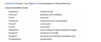 - PolyhedronData["Classes"] 给出所有支持类的列表.