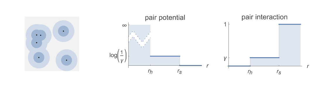 pair potential ![h(r)= 0 r<r_h; gamma r_h<r<r_s; 1 TemplateBox[{True, paclet:ref/True}, RefLink, BaseStyle -> {2ColumnTableMod}]; h(r)= 0 r<r_h; gamma r_h<r<r_s; 1 TemplateBox[{True, paclet:ref/True}, RefLink, BaseStyle -> {2ColumnTableMod}];](Files/StraussHardcorePointProcess.en/11.png)
