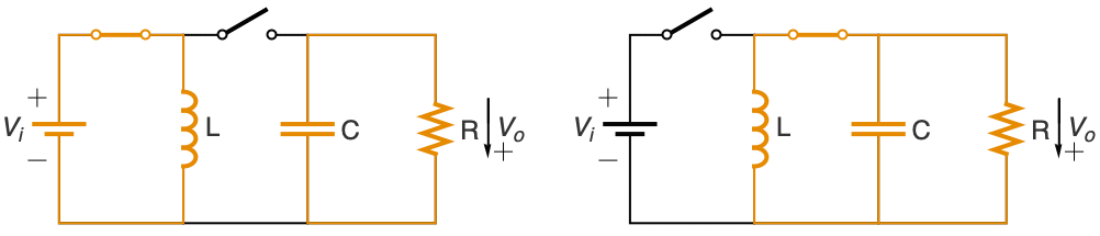 当 vr 增加时,vo[t]=vr[t];电容器充电,并将电流供给到负载. 当 vr 开始降低 (vr'[t]<0),电容器通过负载放电,输出电压服从 vo'[t]=vo[t]/c r :
