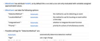 - WhenEvent[{event1,…},action] 被处理为 {WhenEvent[event1,action],…}.